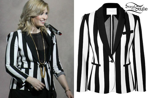 Demi Lovato attended the Vogue World: Hollywood 2025 at Paramount Studios wearing Ruffle-Trimmed Guipure Lace Top ($940.00) and matching Ernestine Ruffle-Trimmed Guipure Lace Knee-Length Skirt ($895.00) by Ludovic de Saint Sernin with Saint Laurent Amalia 110 Patent Leather Slingback Pumps ($2,050.00).