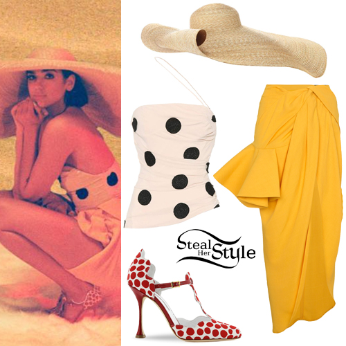 Olivia Culpo shared some photos on instagram wearing an Essential Rib Tank Top ($19.50) and Baggy Dad Barrel Jeans available here ($69.97) and here ($108.00) both by Levi’s, Jacquemus La Casquette Cap ($107.00), Saint Laurent SL 557 Slim Oval Sunglasses ($300.00) and Bottega Veneta Madame Pumps ($291.00+).