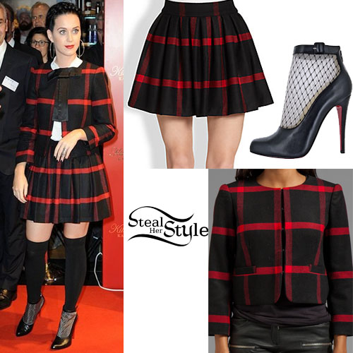 Katy Perry shared some pictures on instagram wearing Christian Dior Wool and Silk Flared Mid-Length Dress (Sold Out), Emily P. Wheeler Baby Fringe Earring ($8,400.00) and Chloé Iris Embellished Leather Ballet Flats ($345.00).