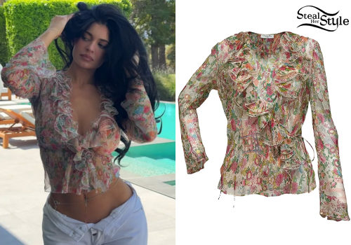 Kylie Jenner shared a photo on instagram wearing a vintage Christian Dior Silk Blouse ($2,093.00).
