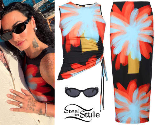 Sofia Richie shared some photos on instagram wearing SRG Jia Dress ($500.00), Bottega Veneta Andiamo Clutch ($3,500.00) and Ray-Ban Lady Burbank Cat-Eye Sunglasses ($168.00).