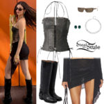 Victoria Justice performed at the Desert Sky Pavillion last month as part of the Summer Break Tour wearing a Forever 21 Electro-Darling Bustier ($11.99) with a pair of ASOS Fringe Shorts ($37.33) and her ALDO Coretta Sneakers ($90.00).