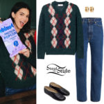 Kendall Jenner was spotted leaving Soho Beach House after dinner in Malibu wearing a Calvin Klein 205W39NYC’s Dennis Hopper-Print Cotton Jersey T-Shirt ($206.00), Martine Rose Mid-Rise Straight-Leg Jeans ($391.00), a Prada Mini Hobo Bag ($95.00) and Adidas Forum Low Sneakers ($70.00).