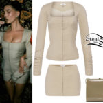 Hailey Baldwin was spotted out and about in Beverly Hills wearing a Prada Wool-Gabardine Bustier Top ($920.00), Levi’s Dad Jeans ($98.00), a vintage Chanel Timeless Classic Vanity Box Bag ($1,974.00), Off-White x Sunglass Hut Hu4001 Sunglasses (Sold Out), Jennifer Fisher Maeve Hoops ($950.00) and Amina Muaddi Gilda Suede Sandals ($1,010.00).
