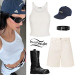 Kendall Jenner was spotted leaving Nobu in Malibu wearing an Steele Micro Tank ($32.00), Mozh Mozh Crochet Mini Skirt ($325.00), By Far Baby Amber Bag ($478.00), Missoma Gold Medium Molten Hoops ($149.00), Skims Face Mask ($8.00) and Staud Audrey Sandals ($265.00).