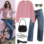 Olivia Rodrigo celebrated the release of her Sour Prom Concert film with a prom party wearing vintage Betsy Johnson Pink New York Silk Lace Slip (Sold Out), Janky Jewels Fish Tank Necklace ($145.00), Rimor Jewelry 3 Row Venus Heart Choker ($250.00), Justine Clenquet Ellie Earrings (€65.00) and LeSilla Prince Platform Sandals (€1,012.00 – wrong color).