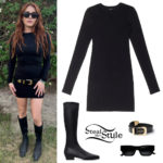 Sydney Sweeney: Grey Floral Dress, Black Pumps
