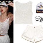 Taylor Swift arrived at the MTV Video Music Awards wearing Oscar de la Renta Halter Neck Crystal Cocktail Dress ($24,990.00), Lorraine Schwartz Jewerly (Not available online) and custom-made Christian Louboutin Bombina Metallic Sandals ($1,095.00 – similar style pictured).