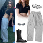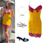 Hailey Baldwin: Red Cardigan and Mini Skirt
