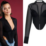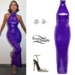Khloé Kardashian attended an event for her new fragance XO KHLOE ($78.00) wearing a Star Corset ($285.00) and Hustle Pant ($295.00 – similar style) by Rezek Studio, Judith Leiber Best Ice Cream Lunchbox Crystal Clutch (Sold Out) and Christian Louboutin So Kate Pumps ($572.00).