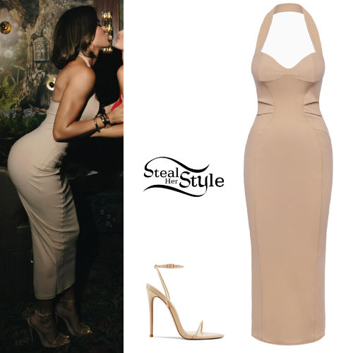 Khloé Kardashian: Beige Dress, Strappy Sandals