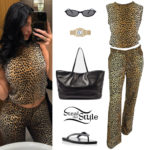 Kylie Jenner shared some photos on instagram wearing Daisy Silk Bikini (€500.00 – set) and Lsd Daisy Scarf (€169.00) both by Juan Vidal, Reformation Vida Low Rise Pant ($198.00), Alaïa Le Teckel Small Leather Shoulder Bag ($2,250.00), Cartier Panthere de Cartier Mini Watch ($21,700.00) and Tkees Lily Liners Flip Flops ($76.00).