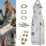 Lindsay Lohan promoted Freakier Friday last week wearing a Tailored Cotton Boucle Jacket ($5,050.00) with High-Rise Cotton Boucle Shorts (Sold Out) both Giambattista Valli, Khaite x Oliver Peoples 1969C Oval Sunglasses ($315.00) and Manolo Blahnik Leva White Nappa Leather Sandals (Sold Out).