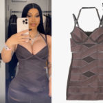 Cardi B shared some photos on instagram wearing Alaïa Edition Polka-Dot Jacquard Knit Mini Dress (Sold Out) and LeSilla Lola Sandals ($517.20).