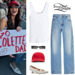 Olivia Culpo: Red Leather Jacket, White Jeans