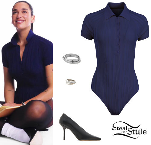 Dua Lipa: Silver Dress, Blue Bodysuit