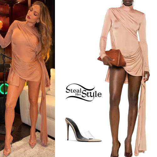 Jennifer Lopez: Draped Dress, PVC Mules