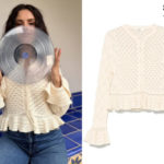 Selena Gomez appeared at the Hannah Montana 20th Anniversary Special wearing Leta Sweater ($1,180.00), the Benny Belt ($440.00) and Nevada Leather Boots ($1,680.00) all by Khaite, Saint Laurent Clyde Jeans ($1,150.00) and Misho Designs Nigiri Earrings ($215.00).