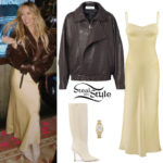 Cara Delevingne was spotted leaving The Bowery Hotel in New York City wearing a Love Club Magazine Tee (Not available online), a Saint Laurent Classic Biker Jacket ($4,990.00), Kutula Tracksuit Bottoms ($50.00), a Rimowa Salsa 22″ Cabin Multiwheel Suitcase ($525.00) and Chanel Calfskin & Neoprene Sneakers (Not available online).