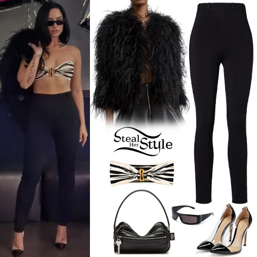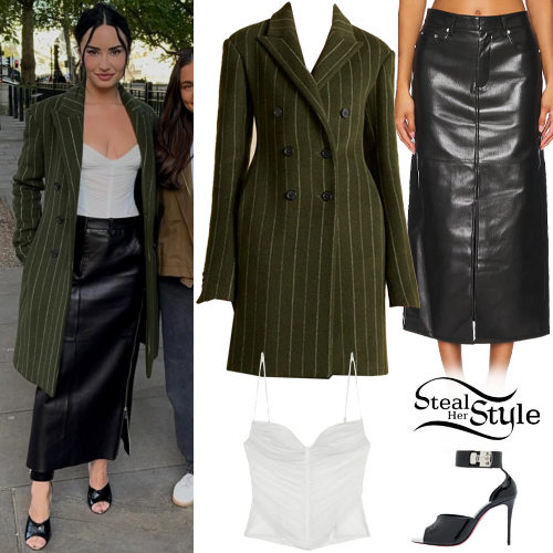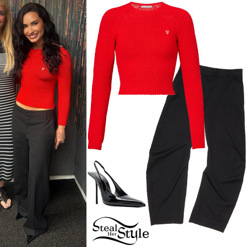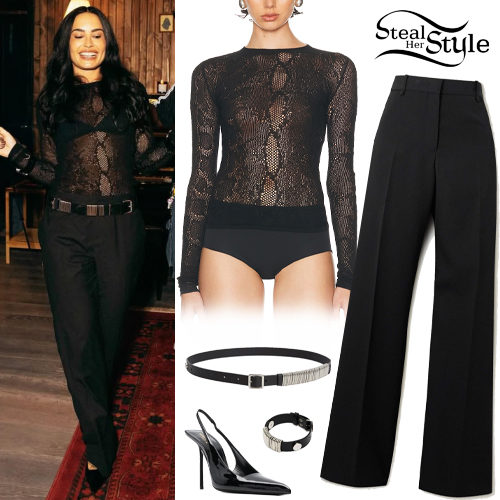 Demi Lovato attended the Vogue World: Hollywood 2025 at Paramount Studios wearing Ruffle-Trimmed Guipure Lace Top ($940.00) and matching Ernestine Ruffle-Trimmed Guipure Lace Knee-Length Skirt ($895.00) by Ludovic de Saint Sernin with Saint Laurent Amalia 110 Patent Leather Slingback Pumps ($2,050.00).