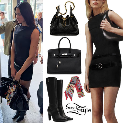 On this shot she is seen wearing Fleur Du Mal Rib Polo Bodysuit ($295.00) available here and here, Lenon Bangle ($298.00) and Lennon Ring ($128.00 – set of 2) both by Jenny Bird, Altare Milano Ring (Price upon request) and Armarium Franca Leather Pumps ($762.00).