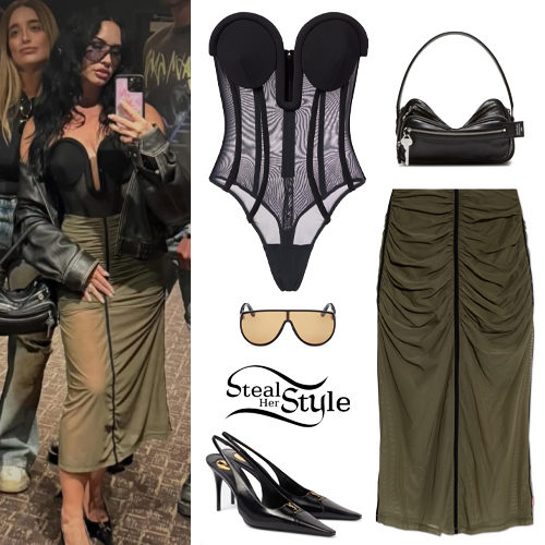 Taylor Swift attended the premiere of “The End of an Era”, her new Disney Plus docuseries wearing Alaïa Ribbed Wool Turtleneck Bodysuit ($2,300.00), Miu Miu Pleated Checked Mini Skirt ($2,350.00 – wrong print), Calzedonia Soft Comfort 50 Denier Microfiber Tights ($17.00), Octavia Elizabeth Diamond Jumbo Edith Hoops ($10,800.00), Fiametta Emerald Double Huggies ($2,100.00) and Louis Vuitton Midtown High Boot ($2,370.00).
