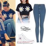 Becky G did her makeup with COVERGIRL Lipslicks Smoochies Lip Balm ($3.49 – $4.99) and COVERGIRL Clean Whipped Crème Foundation ($6.99). She has a huge set of makeup brushes from Bdellium Tools and a black egg-shaped blending sponge which could be either the Beauty Blender Makeup Sponge ($19.95) or the Dior Backstage Blender Fluid Foundation Sponge ($20.00).