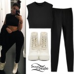 Becky G did her makeup with COVERGIRL Lipslicks Smoochies Lip Balm ($3.49 – $4.99) and COVERGIRL Clean Whipped Crème Foundation ($6.99). She has a huge set of makeup brushes from Bdellium Tools and a black egg-shaped blending sponge which could be either the Beauty Blender Makeup Sponge ($19.95) or the Dior Backstage Blender Fluid Foundation Sponge ($20.00).