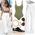 Marzia Bisognin laid out all of her travel essentials for her “Let’s Pack Together!” video. She packed a blue Miu Miu Leather Wallet ($480.00, wrong color), a neon pink Models Own Make Up Pouch Bag ($8.00), Waitrose Pure Facial Wipes (£2.99), Tarte Lights, Camera, Lashes 4-in-1 Mascara ($20.00), Bare Minerals Prime Time ($11.99), and many more beauty and personal care products.