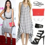Marzia Bisognin laid out all of her travel essentials for her “Let’s Pack Together!” video. She packed a blue Miu Miu Leather Wallet ($480.00, wrong color), a neon pink Models Own Make Up Pouch Bag ($8.00), Waitrose Pure Facial Wipes (£2.99), Tarte Lights, Camera, Lashes 4-in-1 Mascara ($20.00), Bare Minerals Prime Time ($11.99), and many more beauty and personal care products.