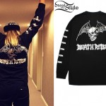 Janel Parrish wearing a ring in her auricle piercing, a jeweled stud in her tragus piercing, an Amanda Marmer Black Diamond Boho Ear Pin ($450.00) in her upper lobe, and a drop earring in her lobe.