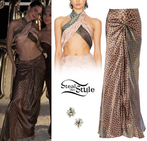 Kendall Jenner shared some photos on instagram wearing Airlift Divine Bra ($78.00) and 16” High-Waist Airlift Capri ($124.00) both Alo Yoga, a Paisley Woven Pashmina available at Walmart ($13.99) and Target ($20.00), with Park Three Leather Tote Bag ($1,920.00 – wrong color) and Awar Leather Flats ($970.00).