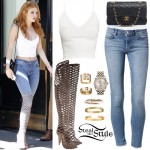 Victoria Justice wore bronze eyeshadow and red lipstick for The Heart Truth Red Dress Collection show during Mercedes-Benz Fashion Week in New York City on February 6, 2014. Makeup artist Lusine Galadjian writes “How gorgeous is she?! I did a soft bronze smokey eye using @officialurbandecay and paired it with @smashboxcosmetics #infraded on her lips. She also used an airbrush foundation from Temptu and hair products from Oribe.