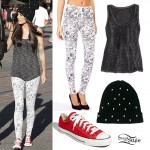 Gabriella Demartino had a pretty girlish look wearing her long milk chocolate brown hair half-up half-down with tinny face-farming pieces
