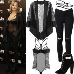 Ella Eyre has a writing tattoo on the left side of her upper back. The words “Sliem għalik, Marija, Bil-grazzja mimlija” come from the Maltese language version of the Catholic rosary prayer, meaning “Hail Mary, Full of Grace.”