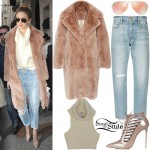 Steph Stone painted Bella Thorne’s nails using Chanel Le Vernis Nail Colour ($27.00) in “487 Rouge Fatal” and then applied gold triangles to the base of each finger.