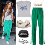 Megan Massacre has two tattoos on her upper left arm — a purple woman and a green monster