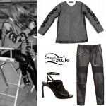 On the back of her left upper arm, Carah Faye Charnow has two skeleton hands making the “LA” symbol for Los Angeles.